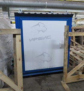 Котел смонтирован в утепленном металлическом боксе. Стенки бокса выполнены в виде трехслойных конструкций, состоящих из профильных стальных листов с внутренним утеплением из минераловатных плит толщиной 50 мм. Для удобства обслуживания и ремонта Ирбис НК передняя панель выполнена открывающейся. На задней панели имеются технологические люки для настройки, технического обслуживания и ремонта. С удаленного пульта наблюдения оператор может контролировать состояние уличного котла во время работы. При возникновении аварийной ситуации котел выключается автоматически и подает сигнал на удаленный пульт наблюдения.